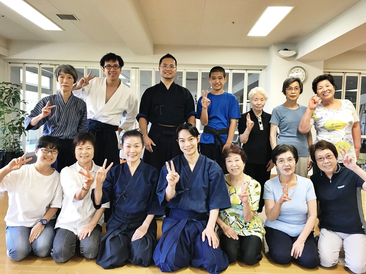 高齢者住宅『クラーチ溝の口』での剣術教室が終了。この日は私を含め常連の後藤さんとIくん親子もゲストとして参加。 杖術・抜刀術や、習いたての杖整体操を参加者対象に施術した。最後に演武として組太刀を行った。(まだまだ技量が足りず。。) 終了後は皆さんで記念撮影。ありがとうございました! pic.twitter.com/JXwyPZB1LV